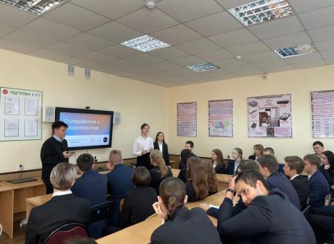 Юридический факультет ЮФУ, в рамках сотрудничества с гимназией им. М. М. Сперанского, проводит дни профессионального ориентирования гимназистов. На очередном занятии, которое состоялось 12 октября 2023 года, студенты юридического факультета рассказали обучающимся гимназии о профессии следователя.