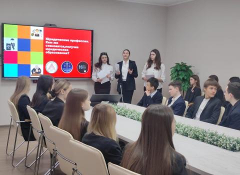 25 января 2024 года состоялся очередной день профессионального ориентирования, который ежемесячно проводится в профильной гимназии студентами юридического факультета. Студенты юридического факультета ЮФУ Квиквиния Мия Гиевна, Мирошниченко Ксения Александровна и Губатян Элина Норайровна, провели интерактивную беседу с обучающимися 9 и 10 х классов гимназии имени М. М. Сперанского на тему «Юридические профессии. Кем же становятся, получив юридическое образование?» На очередном занятии по профессиональному ориентированию наши студенты рассказали о профессии адвоката и нотариуса.