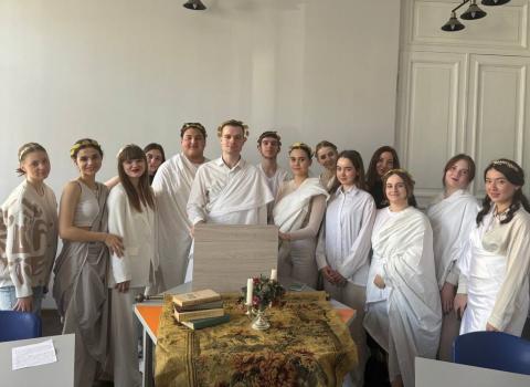 1 апреля студенты 1 курса 3 группы (А. Иглина, А. Сошников, В. Колонтай, Д. Марущак, О. Бауткин, В. Охапкина, А. Есаулова, С. Маняха, А. Плужников, С. Шерер, Р. Навроцкая, М. Лукьянченко, Е. Джураева) под руководством доц. Е.В.Муравьевой приняли участие в реконструкции судебного процесса в Древнем Риме «Цицерон против Верреса».