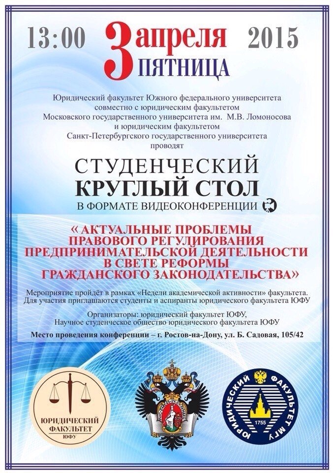 Cтуденческий круглый стол: "Актуальные проблемы правового регулирования предпринимательской деятельности в свете реформы гражданского законодательства"