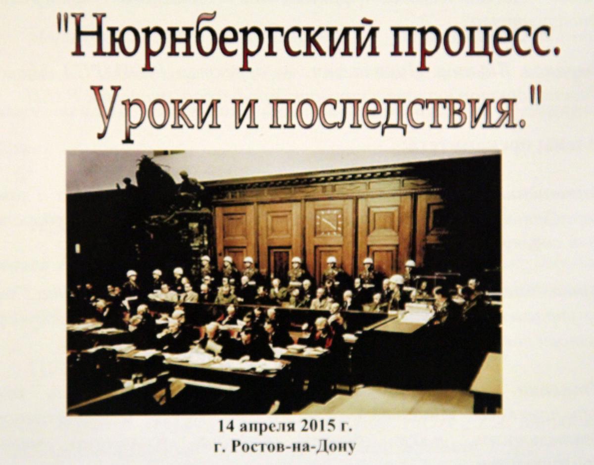 14 апреля 2015 года в Главном управлении Министерства Юстиции РФ по Ростовской области состоялась тематическая конференция «Нюрнбергский процесс: уроки и последствия». Фотоотчет см. здесь.